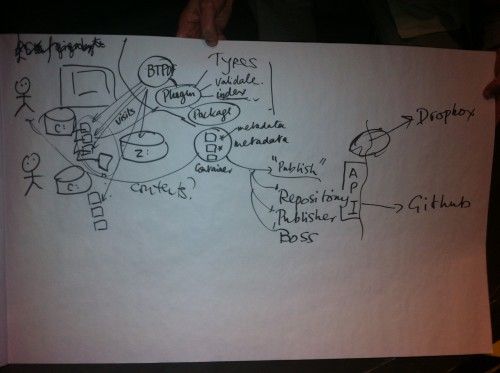 Peter Sefton demonstrated his Fascinator tool that already has a lot of the required functionality. But it was the breakfast discussion before departing – again with Cameron Neylon, but this time also including Peter Murray Rust, Peter Sefton and Ana Nelson – that helped me to put all my thoughts into place.