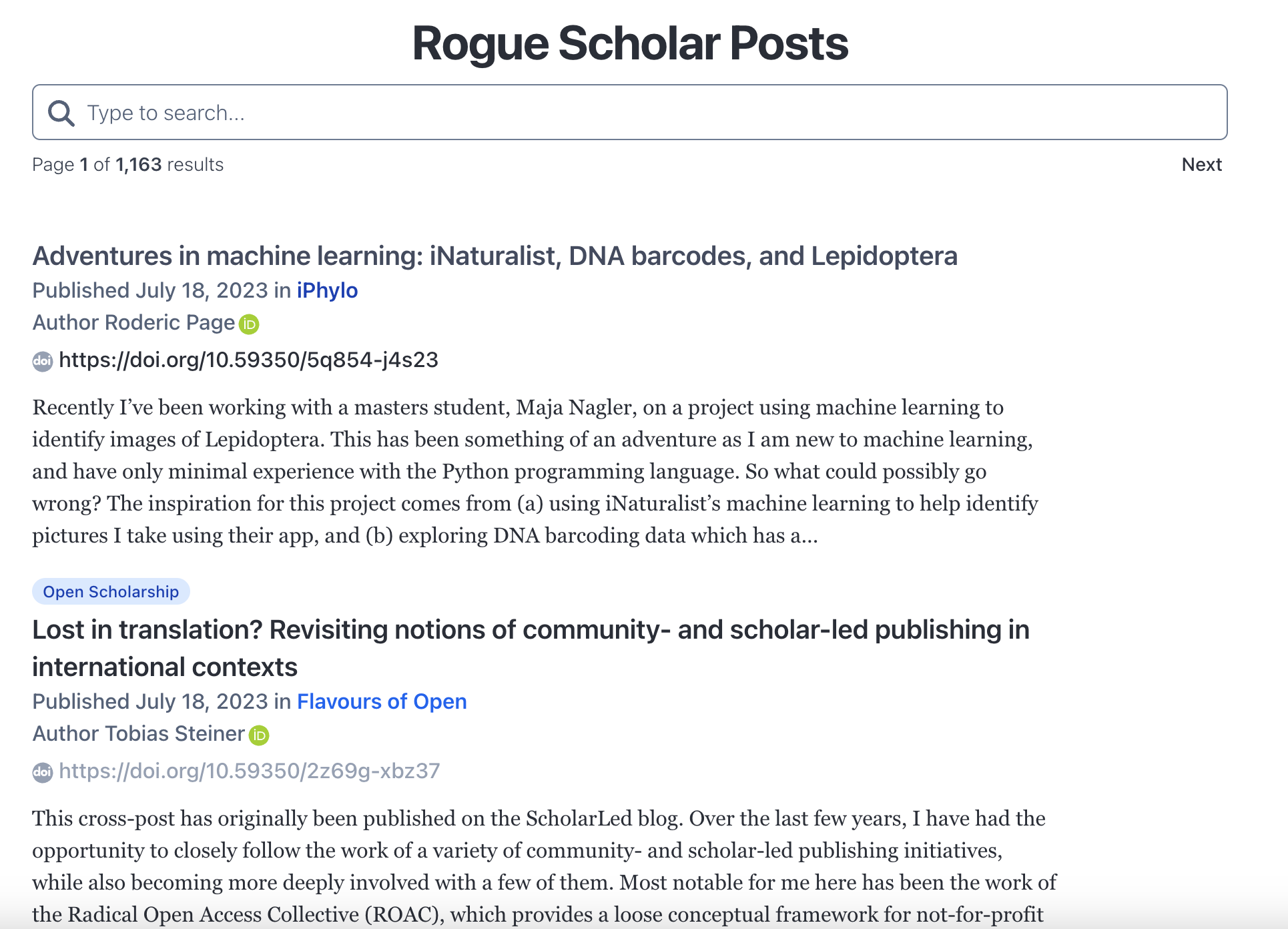 Please reach to me if you have feedback or questions, or if you need help adding your blog to the Rogue Scholar. The next feature I will be working on is a streamlined payment process for blogs with more than 50 posts per year (which are always free).