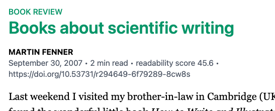 Readability is obviously important for any kind of scholarly communication, from writing papers to blog posts. I have written about scientific writing before (e.g. Scientific writers can help publish good papers, Books about Science Writing, Do you know the Flesch score of your papers?), and writing scholarly content that is understandable is something that can be taught and learned.