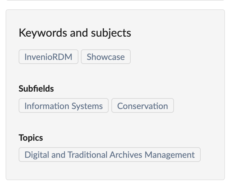 The InvenioRDM repository platform that powers Rogue Scholar has built-in subject classification with the OECD Fields of Science since v6.o released in August 2021, but this can easily be extended with custom vocabularies. Rogue Scholar now has these four hierarchical OpenAlex vocabularies built in: