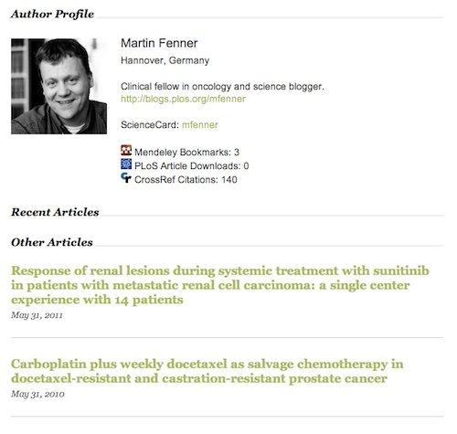 The ScienceCard project is still at the beginning, and there are enough ideas to move this project forward in interesting ways. I’m particularly interested in improving the user interface and display of information, adding datasets and other scholarly content, and in integrating with the ORCID unique author identifier service once the service launches in the spring of 2012. If you are interested in learning more about ScienceCard, please contact me via email or Twitter, or attend the altmetrics session at ScienceOnline2012, which I will do together with Euan Adie from altmetric.com and PLoS Impact Explorer, and Jason Priem from Total Impact (two other Mendeley/PLoS API Binary Battle finalists).