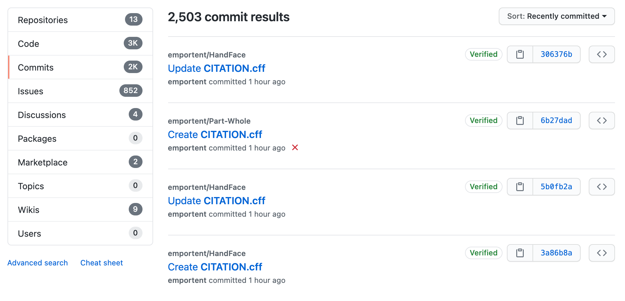 We also see hundreds of repositories adding CITATION.cff files every week since the initial announcement – you can track the adoption via this GitHub query.
