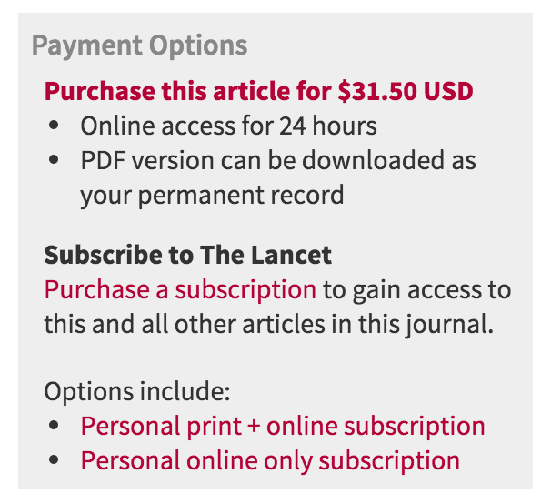There is also a document delivery service provided by libraries, but that option varies considerably by country and in Germany for example means a scanned article as printout rather than the original PDF because of a change in German copyright law a few years ago. There are also the services DeepDyve and ReadCube, but again you don’t get the PDF (or only for prices similar to those quoted above), but rather limited access for reading and printing.